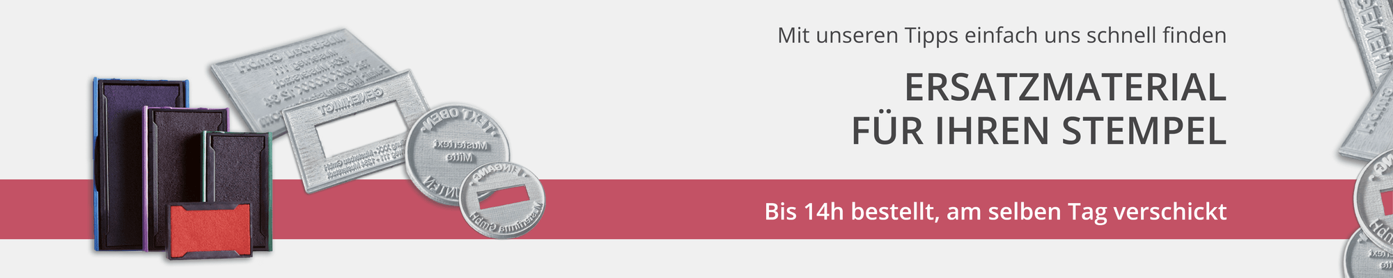 Hier finden Sie schnell und einfach, wonach Sie suchen: Sie können ein bestimmtes Stempelmodell suchen, Stempel-Ersatzmaterial finden oder nach einer bestimmten Grösse suchen.