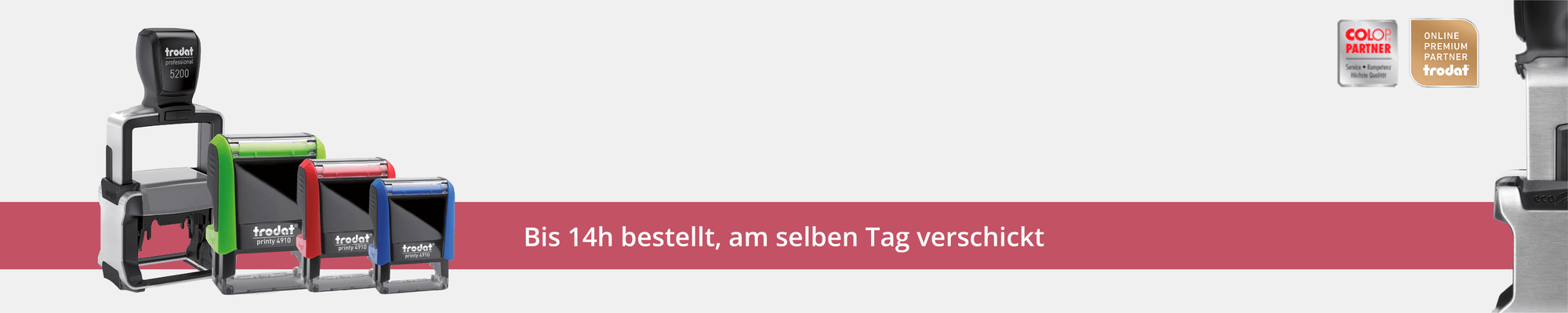 Sie möchten einen Stempel bestellen, der langlebig, präzise und hochwertig ist? Dann sind Sie bei uns richtig! Wir führen Qualitätsstempel der Marken Trodat, Colop und Reiner – vom klassischen Holzstempel bis zum modernen Selbstfärbestempel.