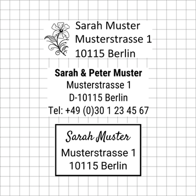 Gestalten Sie Ihren persönlichen Adress-Stempel für den privaten Gebrauch – ideal für Briefe, Karten oder Pakete.